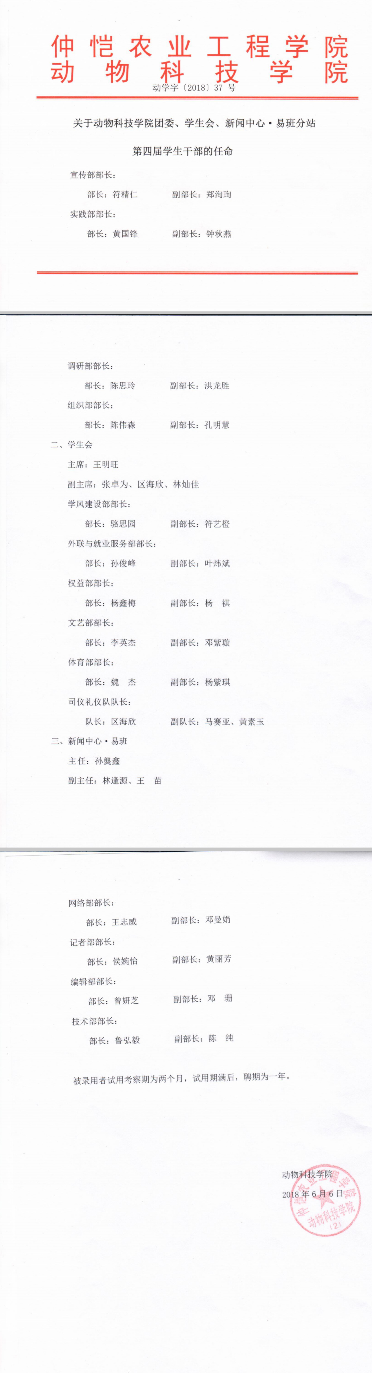 关于yl6809永利官网集团团委、学生会、新闻中心·易班分站第四届学生干部的任命的通知