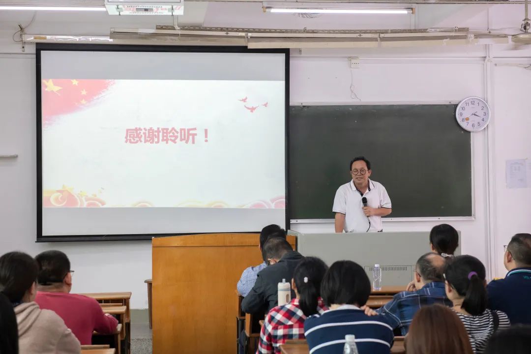 院长林蠡作总结讲话,他表示曾献尼部长的报告引用大量国内外事例与观点,报告深刻而生动,平实而渊博,内容丰富,有理有据,十分精彩。报告围绕“坚持以人民为中心”这条主线,深入讲解了《习近平谈治国理政》(第三卷)的核心要义、精神实质和实践要求。林蠡强调,一是要认真学习习近平新时代中国特色社会主义思想,作为教学单位,要坚定不移的将新时代党的路线方针贯彻落实到学校立德树人的根本任务中去,做好本分工作;二是学以致用,坚持理论联系实际,落实成果转化及产业服务等目标,推动学院发展迈出新步伐。