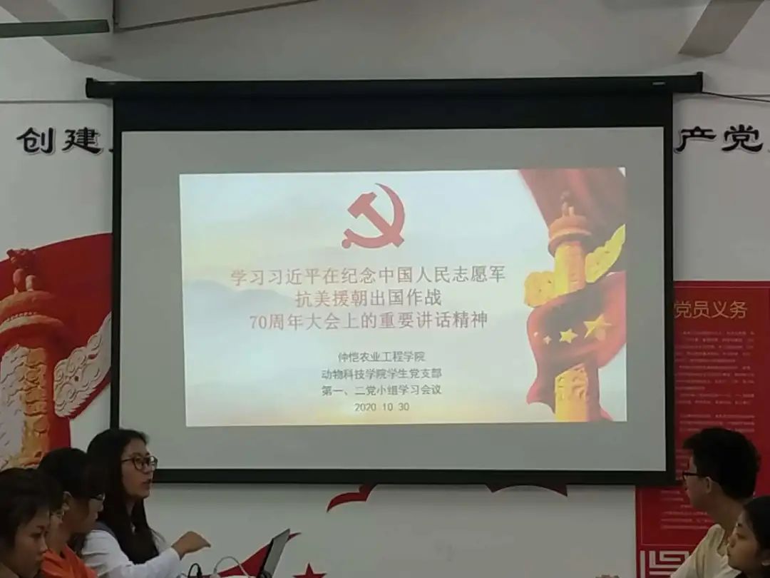 2020年10月30日晚,yl6809永利官网集团学生党支部在党员活动室314开展“学习习近平总书记在纪念抗美援朝作战70周年大会上的讲话精神”活动。会议由党员谭韬主持。