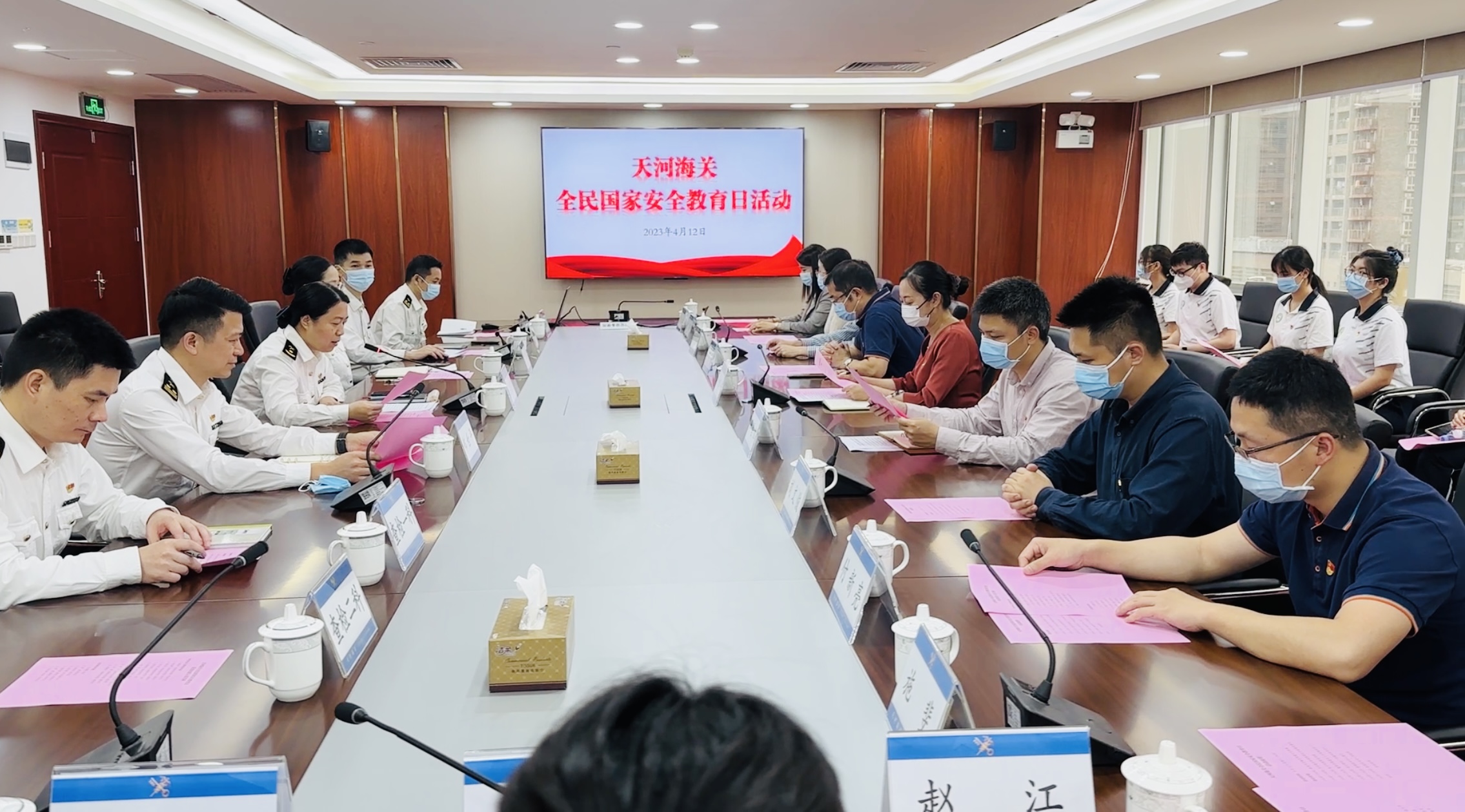 为学习贯彻党的二十大精神,充分发挥基层党组织的核心引领作用,激发“三会一课”新活力,推动党建工作和业务工作深度融合,4月12日,yl6809永利官网集团党委书记朱路平、党委副书记李昌辉、副院长黄运茂、刘文俊和党支部书记、党员代表一行前往天河海关开展党建结对共建暨全民国家安全教育日交流活动。天河海关关长王丽霞、副关长李娟、郑世平以及各科室负责人出席活动。