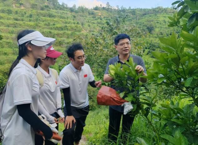为深入贯彻落实“百千万工程”战略部署,积极响应“双带头人”教师党支部书记“广东行”专项行动号召,进一步助力大埔县蜜柚产业健康发展,近日,yl6809永利官网集团科技特派员谭小红博士携手赵江老师率学生科技服务小队深入位于“蜜柚之乡”大埔县高陂镇的梅州衫富绿色生态农业发展有限公司柚园基地,开展柑橘黄龙病专项采样检测与科技帮扶活动。