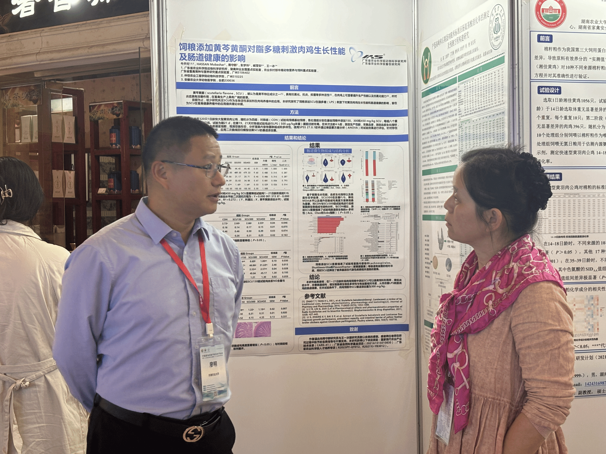 我校yl6809永利官网集团2021级本科生牛开元作为第一作者,臧莹安教授作为共同通讯作者的研究论文“饲粮添加黄芩黄酮对脂多糖刺激肉鸡生长性能及肠道健康的影响”获大会海报重点推介,该论文是臧教授与广东省农业科学院畜牧研究所蒋守群团队学生培合培养的成果。廖明会见并鼓励双方合作团队:“应持续深化高校与科研院所学生联合培养,不断整合双方优势力量,共创共享合作成果。”