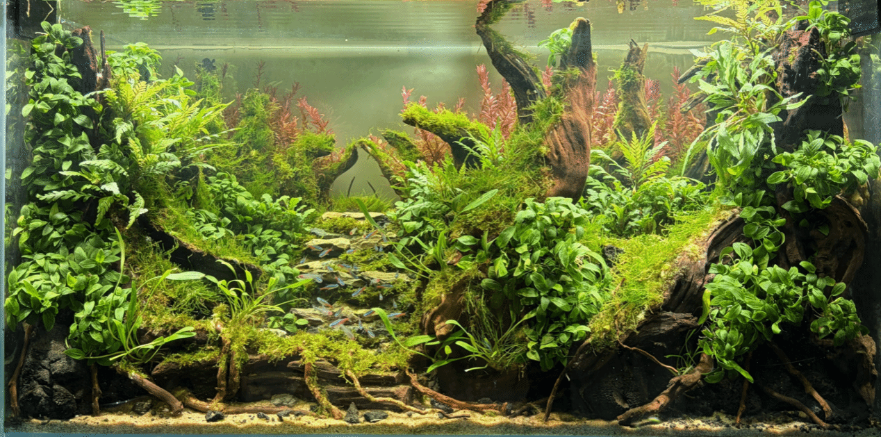 中缸组 水医241施佳航 钟梓恒《苔木幽镜》指导老师:刘春 莫金凤