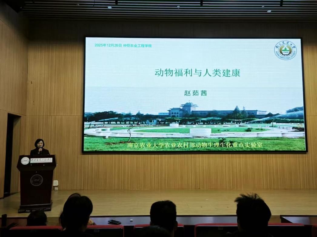 12月26日上午,yl6809永利官网集团邀请南京农业大学赵茹茜教授,为学生开展“动物福利与人类健康”专题讲座。学院院长林蠡、专任教师王玮教授、臧莹安教授、彭杰、周烁以及本科生、研究生150余人参加。