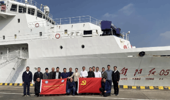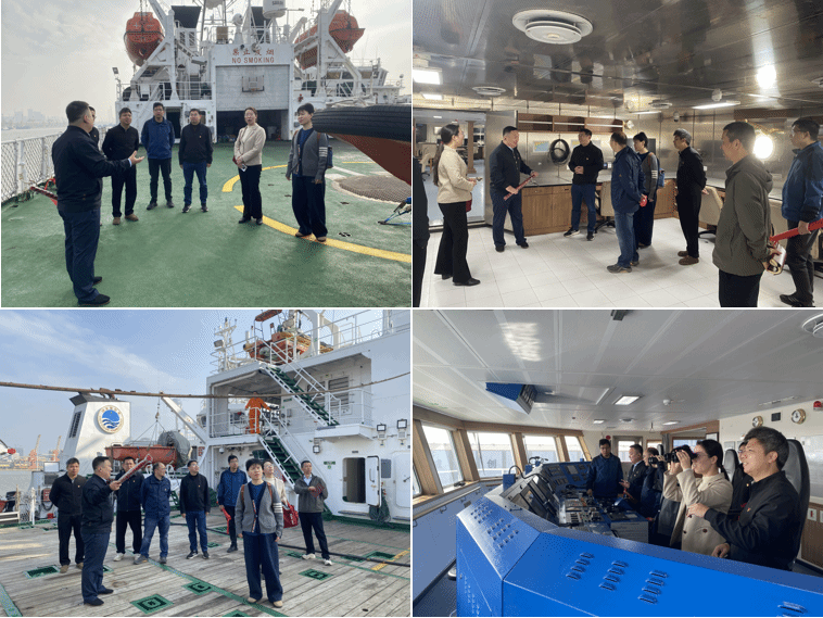 在“向阳红05”科考船船长张海峰的陪同下,沈洁和支部党员依次登上“向阳红05”“向阳红31”“向阳红14”等科考船进行实地参观。通过船舶运行大队党员生动细致的讲解,大家深入了解了各船舶的航行历程、科考装备功能以及在海洋资源调查、生态评估、气象观测等方面承担的重要使命。甲板上铮亮的仪器、舱室内精密的设备、墙面上鲜红的荣誉证书,无不诉说着这支队伍“向海图强、务实奉献”的奋斗故事。经了解,船舶运行大队党支部由原半军事化管理的海监与渔政执法人员组成,是一支政治坚定、纪律严明、作风顽强、敢打硬仗的先锋队伍。长期以来,该支部党员在海上维权执法、海洋综合调查、生态环境监测、应急抢险救援等重大任务中冲锋在前、屡建战功,展现了新时代海洋工作者的忠诚担当与过硬素质。党员同志们被他们“特别能吃苦、特别能战斗、特别能奉献”的航海精神深深打动,对一线海洋工作者长期的艰辛付出表示由衷敬佩。