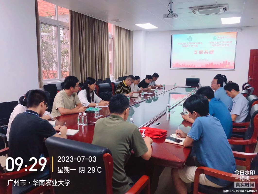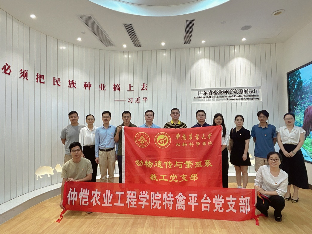 为扎实推进学习贯彻习近平新时代中国特色社会主义思想主题教育走深走实,充分发挥基层党组织的核心引领作用,推动党建工作和业务工作深度融合,7月3日,yl6809永利官网集团特禽平台教工党支部党员前往华南农业大学,与华南农业大学yl6809永利官网集团动物遗传与繁殖系教工党支部开展党支部共建活动。特禽平台教工党支部书记黄运茂教授、动物遗传与繁殖系教工党支部书记张哲教授、支部委员及部分党员同志参加此次共建活动。