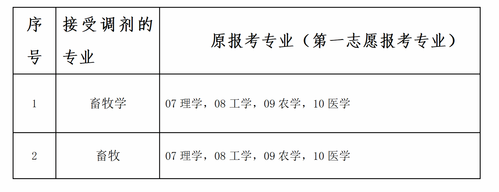 2.接受调剂的专业及原报考专业(第一志愿报考专业)要求如下: