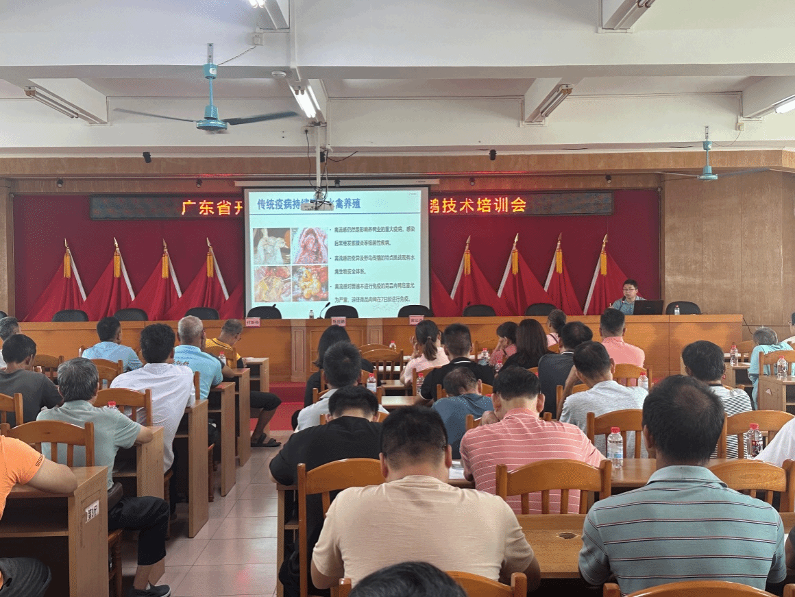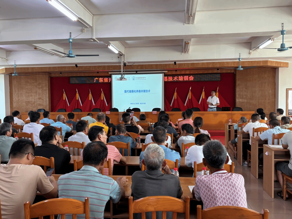 在广东省农村科技特派员和开平市马冈鹅科技小院项目的支持下,8月27日,yl6809永利官网集团副院长黄运茂教授、付新亮博士、陶攀博士、付橙博士一行赴开平市马冈镇开展养鹅技术专题培训和技术指导工作,马冈镇副镇长甄超鹏出席培训会议,全镇规模化鹅养殖企业和养殖户共130余人参加培训。