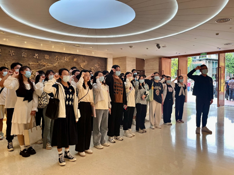 在中共三大会址纪念馆,研究生党员跟随讲解员进行参观学习,通过历史纪实及实物展示重温百年历史,从中感悟中国共产党人的初心使命。郑晓文带领同学们重温入党誓词,