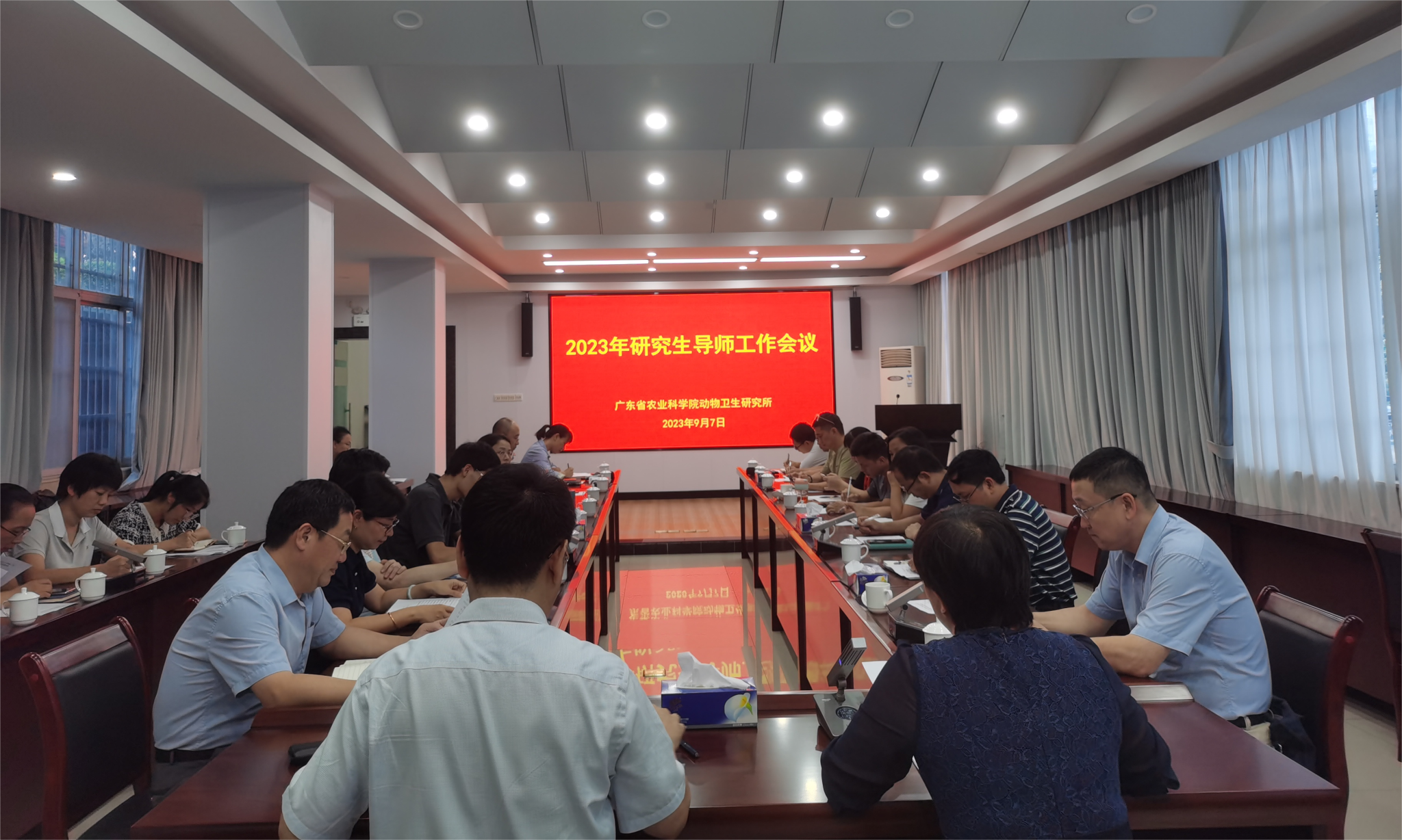 为进一步加强研究生培养工作,9月7日广东省农业科学院动物卫生研究所召开2023年研究生导师工作会议暨教师节迎新茶话会,所领导班子、各部门负责人、研究生导师和2023年到所学习的新生共70余人参加会议,会议由所党总支书记梅盈洁主持。